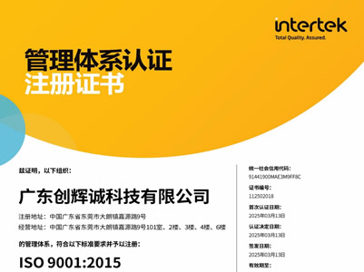 廣東創(chuàng)輝誠通過ISO 9001:2015... 2025年3月13日廣東創(chuàng)輝誠科技有限公司順利通過ISO 9001:2015管理體系認(rèn)證。 創(chuàng)輝誠自2004年成立以來一直致力于從事連接器、線纜... More+