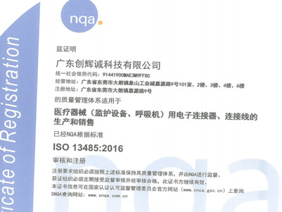 廣東創(chuàng)輝誠科技有限公司順利通... 2025年4月1日廣東創(chuàng)輝誠科技有限公司順利通過ISO 13485:2016認(rèn)證。 創(chuàng)輝誠自2004年成立以來一直致力于從事連接器、線纜組件的研... More+
